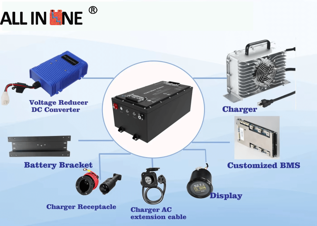 7) Şarj cihazı, voltaj düşürücü, braket vb. gibi komple sistem çözümü sağlayabiliriz.